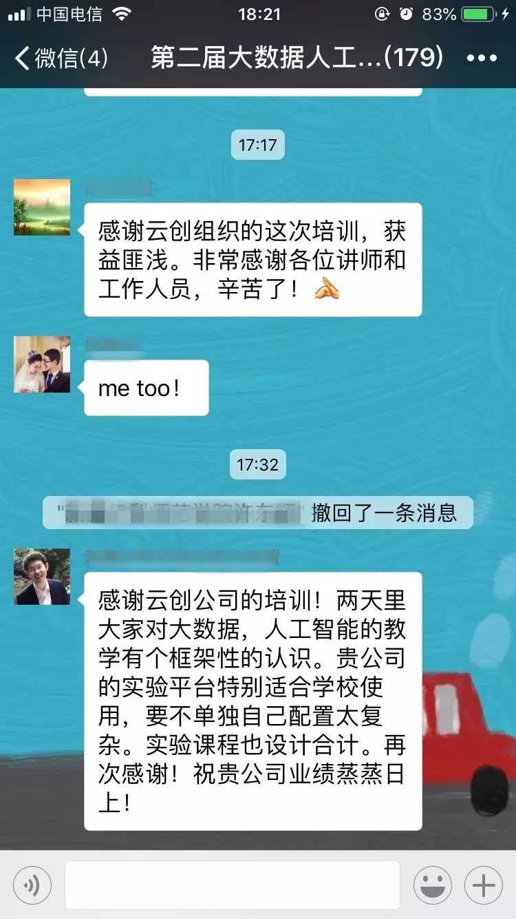 當(dāng)參訓(xùn)老師們拿到云創(chuàng)頒發(fā)的結(jié)業(yè)證書時(shí),紛紛表示此次培訓(xùn)收獲頗豐,確實(shí)不虛此行,相信日后這些培訓(xùn)干貨會(huì)運(yùn)用到大數(shù)據(jù)和人工智能的教學(xué)、實(shí)驗(yàn)中,培訓(xùn)更多此方面的人才。此外,對于能夠提供給自己個(gè)與溝通、與同行交流機(jī)會(huì)的劉鵬教授和云創(chuàng)大數(shù)據(jù),參訓(xùn)老師表示非常感謝,并對云創(chuàng)工程師提供的技術(shù)支持以及會(huì)務(wù)組每位工作人員的辛勤付出給予了好評。