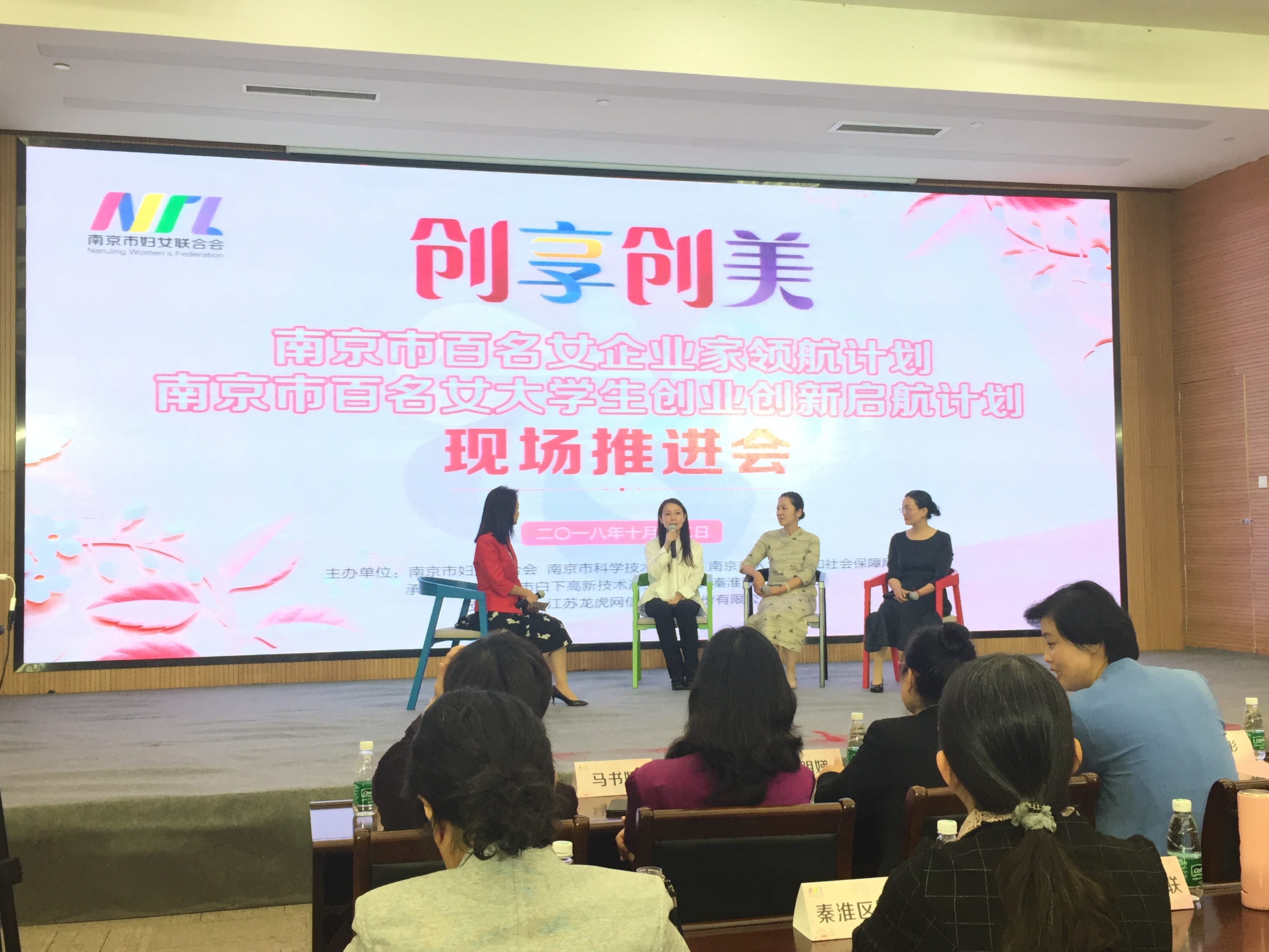 2018年10月12日下午,“創享創美•南京市百名女企業家領航計劃”、“創美創享•南京市百名女大學生創業創新啟航計劃”現場推進會在白下高新園區隆重舉行,江蘇省婦聯黨組書記、主席張彤,南京市婦聯黨組書記、主席談健,秦淮區委副書記、代區長司勇等省、市以及秦淮區領導出席了大會。本次推進會由市婦聯、市科委、市人社局聯合召開,百余位女企業家代表、女大學生代表、媒體代表共同參與。