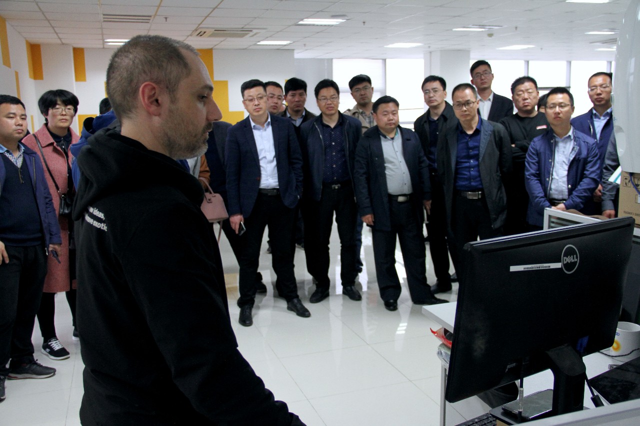 3月27日下午,在中共江蘇省委黨校青年管理干部學院汪老師的陪同下,徐州豐縣科技干部技術培訓班40多位干部蒞臨云創調研指導,云創大數據沈大為總監熱情接待了來賓,并為其作介紹報告,共同探索與交流前沿的大數據與人工智能應用。