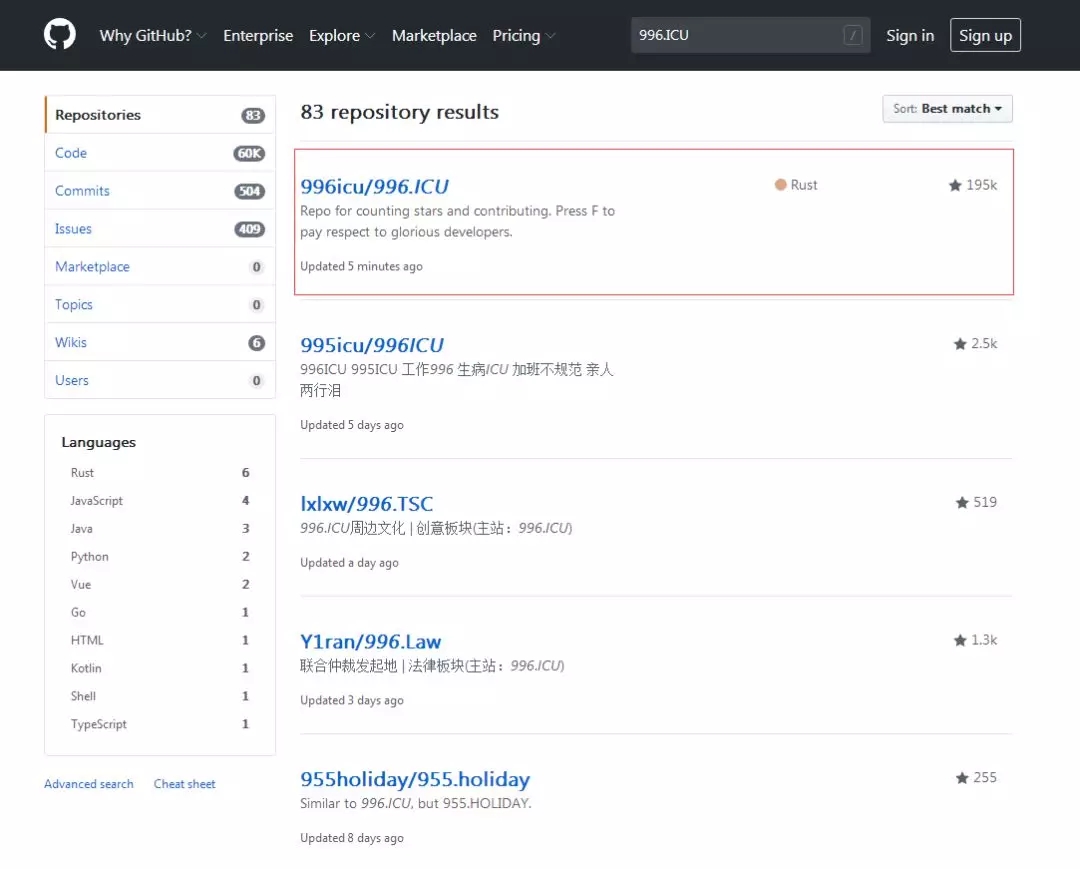 這幾日,在網站GitHub上,一個【996.ICU】項目開始掀起“抵制996”的熱潮,至今已獲得19.5k的點贊星星,不少行業大佬紛紛關注,就連編程語言Python之父Guido van Rossum也呼吁“我們能否為996程序員做點什么?”