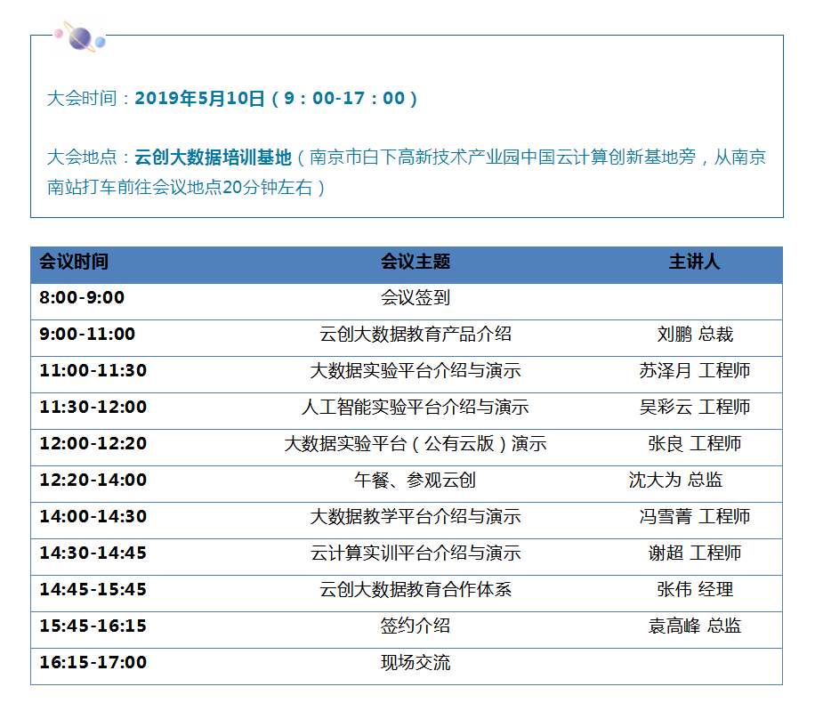 與此同時(shí),云創(chuàng)大數(shù)據(jù)合作辦學(xué)大會(huì)將進(jìn)行實(shí)驗(yàn)實(shí)訓(xùn)平臺(tái)5連發(fā),參會(huì)嘉賓將共同成為見(jiàn)證者,敬請(qǐng)期待: