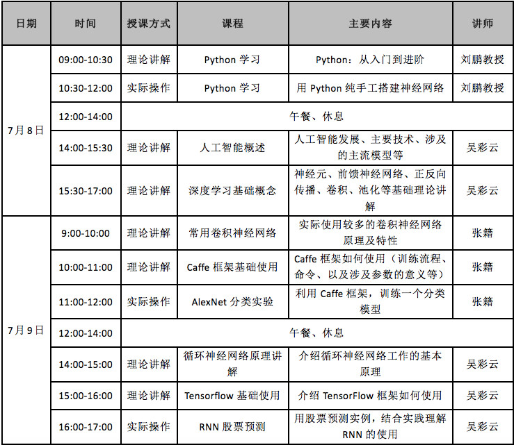 全國高校人工智能實戰免費培訓班:2019年7月8日-9日