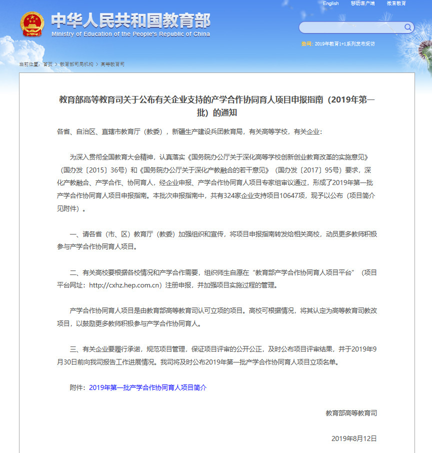 產學合作,才能更好助力高校轉型,“產學合作協同育人” 項目由教育部高等教育司面向企業征集,由企業提供經費支持,更多高校參與項目合作,以產業和技術發展的新需求推動高校人才培養改革,促進高校人才培養與企業發展的合作共贏。