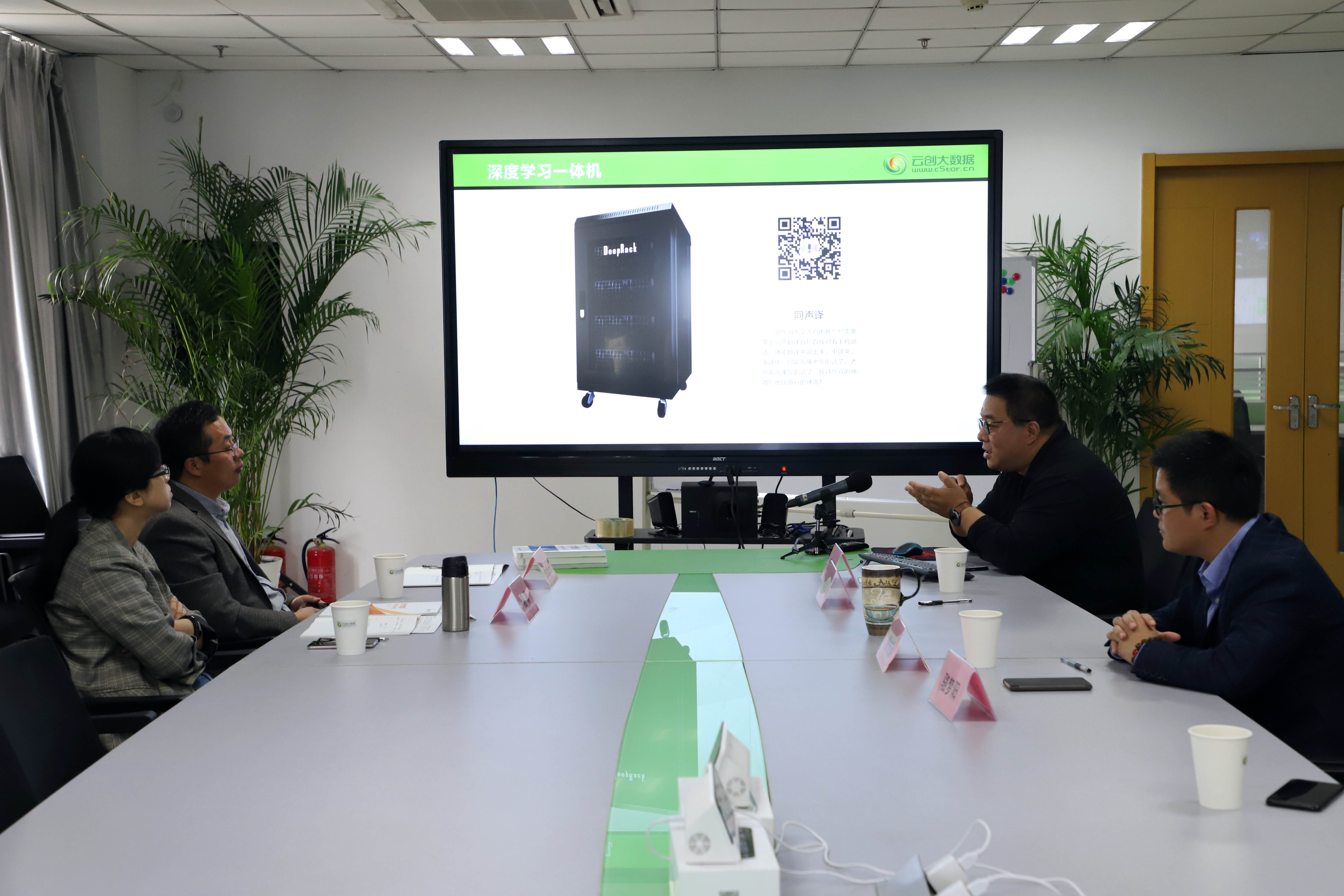 在雙方交流中,劉鵬教授向來賓介紹了云創的企業概況,重點對云創以大數據存儲與智能處理為核心,在智慧環保、平安城市、地震預警以及智能教育等多領域的產品應用和遍地開花的成功案例進行了詳細介紹。此外,雙方還圍繞大數據和人工智能教學開展和課程體系建設等話題進行了深入的溝通探討。