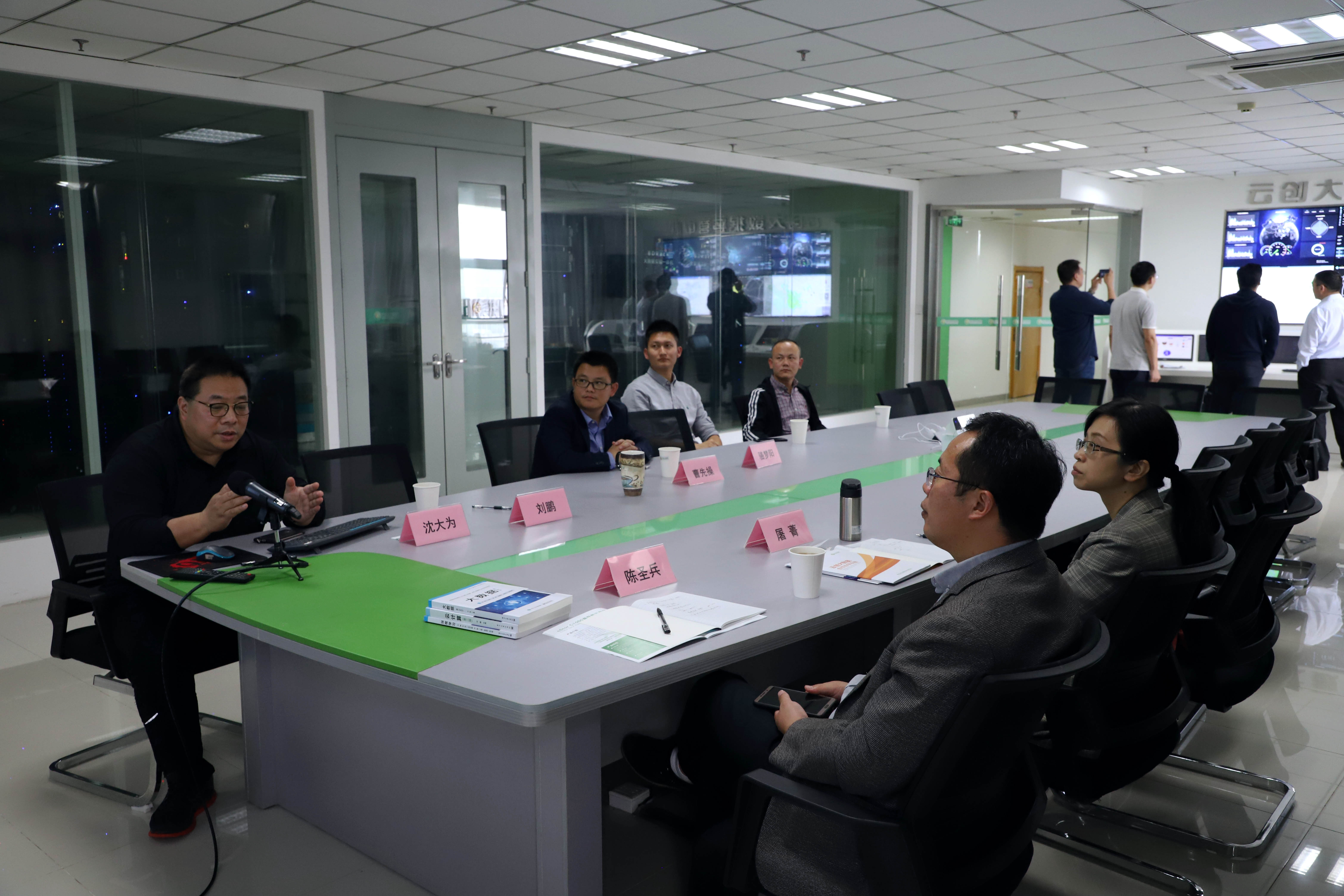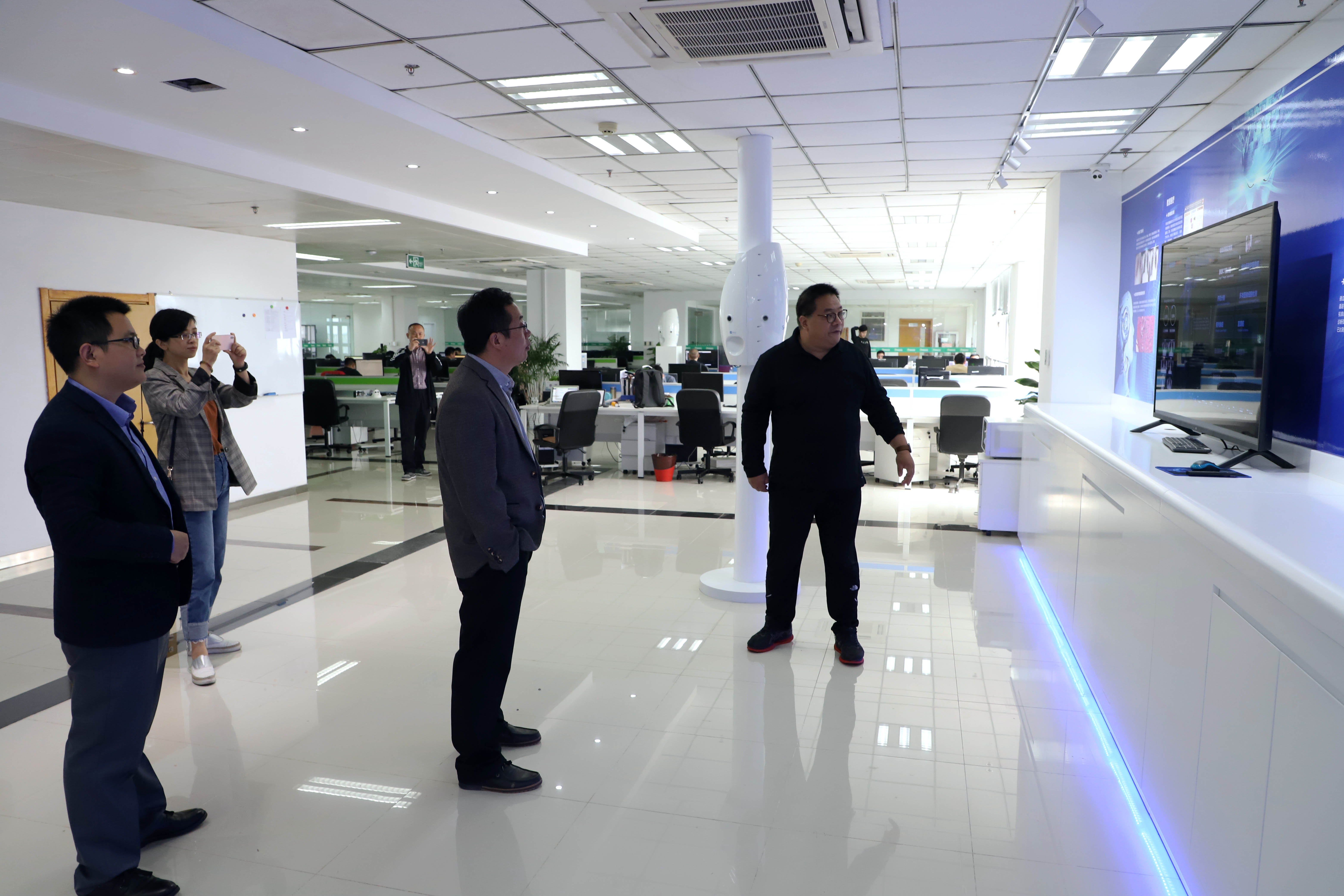 此外,來賓還對云創進行了實地參觀。在大數據運營中心、榮譽資質和技術專利展區,劉鵬教授編寫的書目展示區域,以及云創人工智能研究院,云創展示的多項殊榮和代表產品,贏得了來賓的駐足了解。值得一提的是,來賓對云創利用核心技術,開發的大數據存儲與智能處理產品應用表現出濃厚興趣,并就其技術細節與沈大為總監進行了交流。