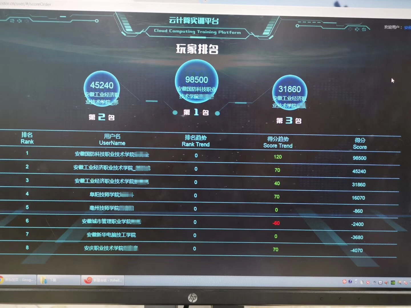 在云計算比賽中,由裁判長劉鵬教授下發比賽試題,并基于云創大數據開發的云計算實訓平臺進行現場PK,比賽分數由該平臺實時呈現展示。在比賽有條不紊的開展過程中,選手以認真的態度和拼搏的精神積極應戰,賽出了參賽人員的真實水平和不俗成績。