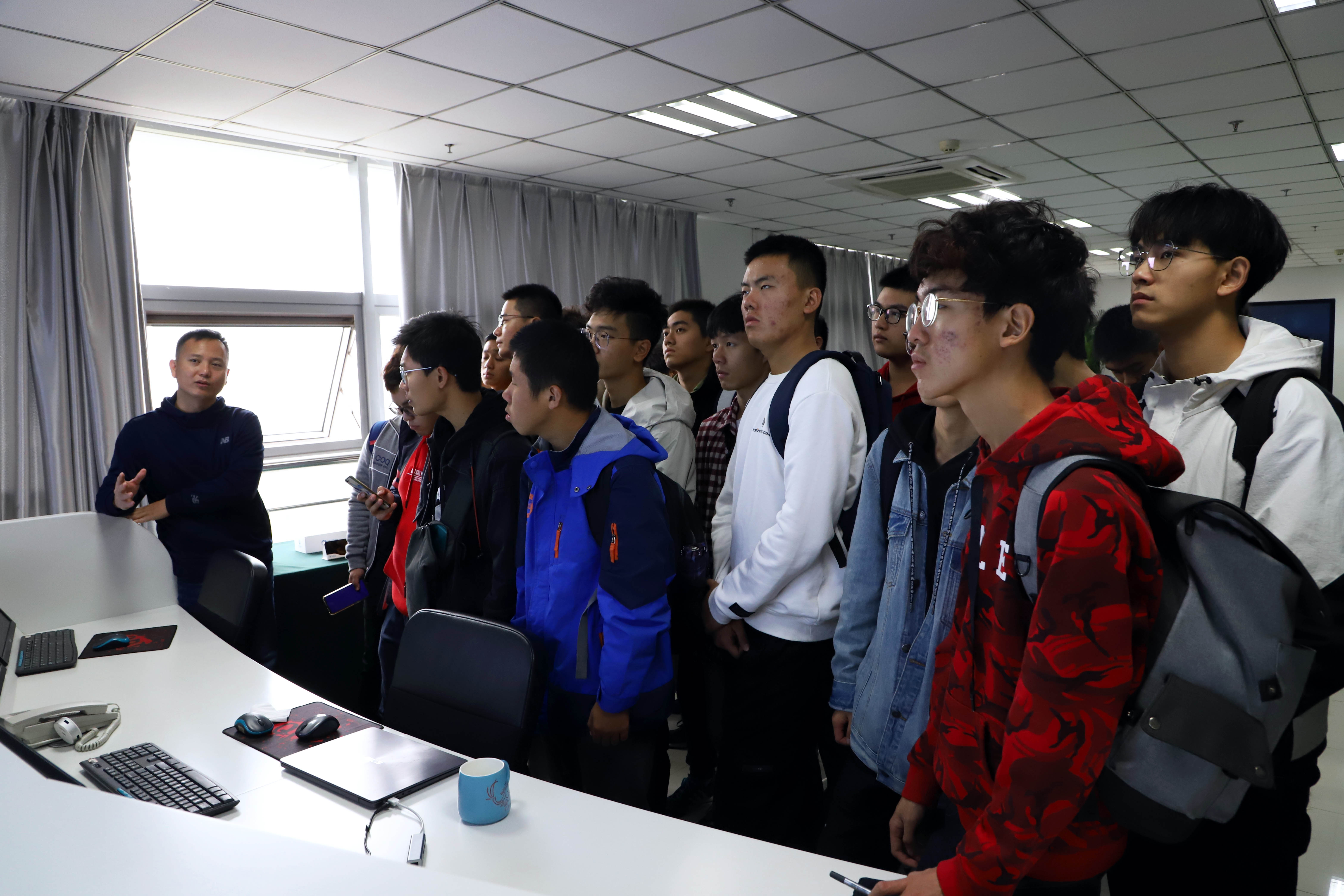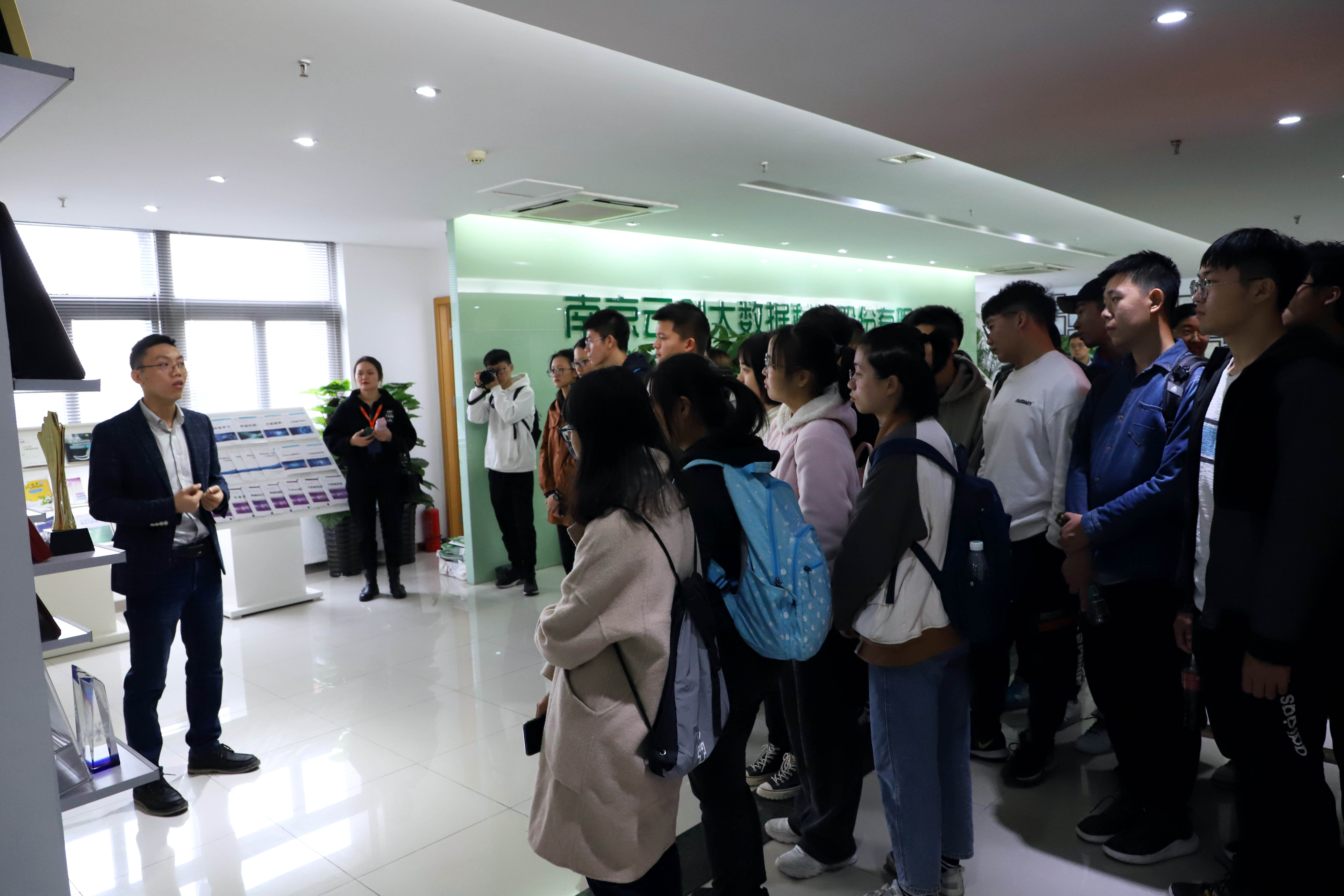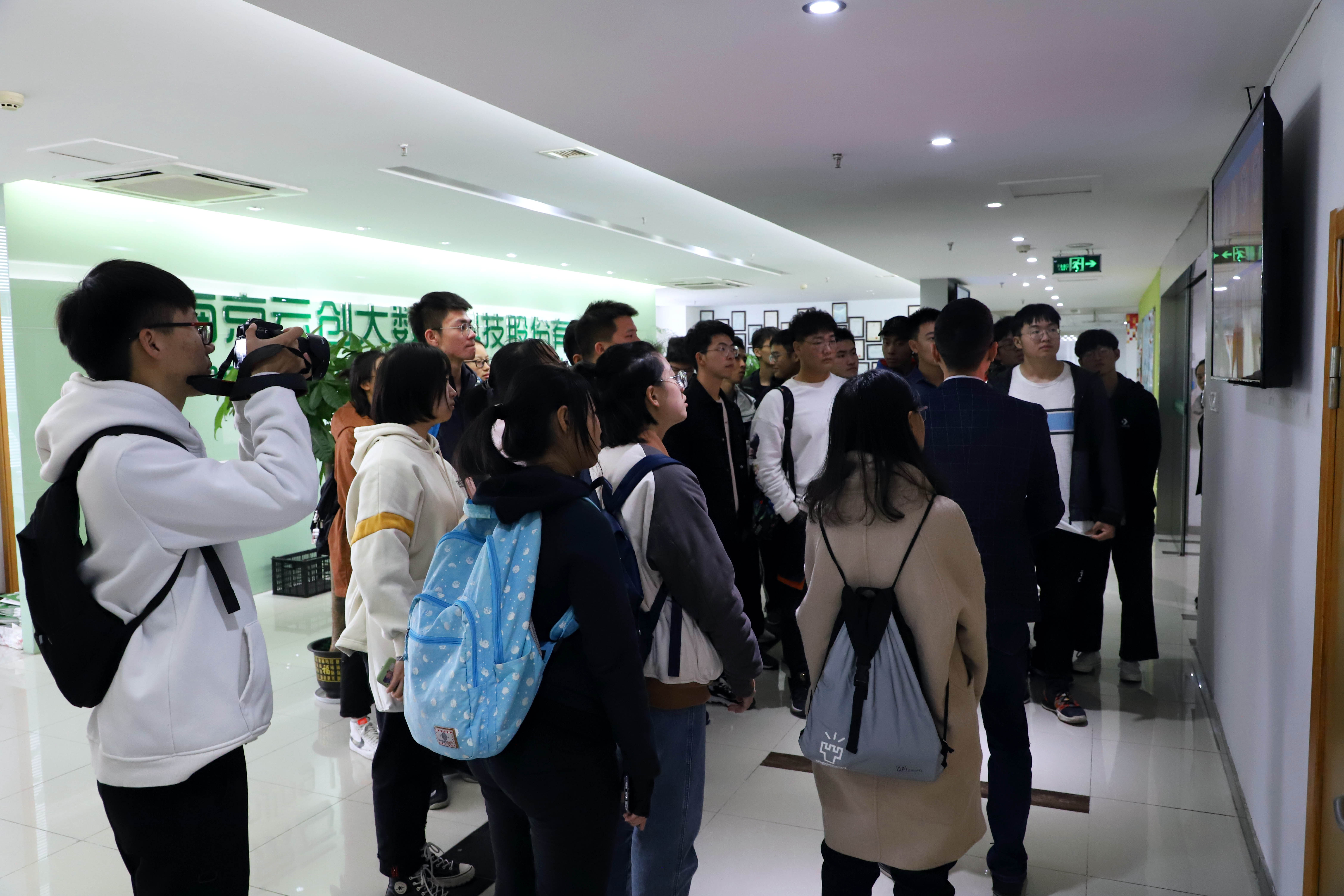 同學們到達后,首先對云創大數據進行了實地參觀。前臺大廳展示的榮譽資質和技術專利、劉鵬教授主編的相關圖書,大數據運營中心以及人工智能研究院展示的云創在公共安全、智慧環保、地震預警、智能教育等領域開發的相關產品應用給同學們留下了深刻印象。同學們對其無不頻頻點贊,并仔細聆聽了云創有關人員的介紹。