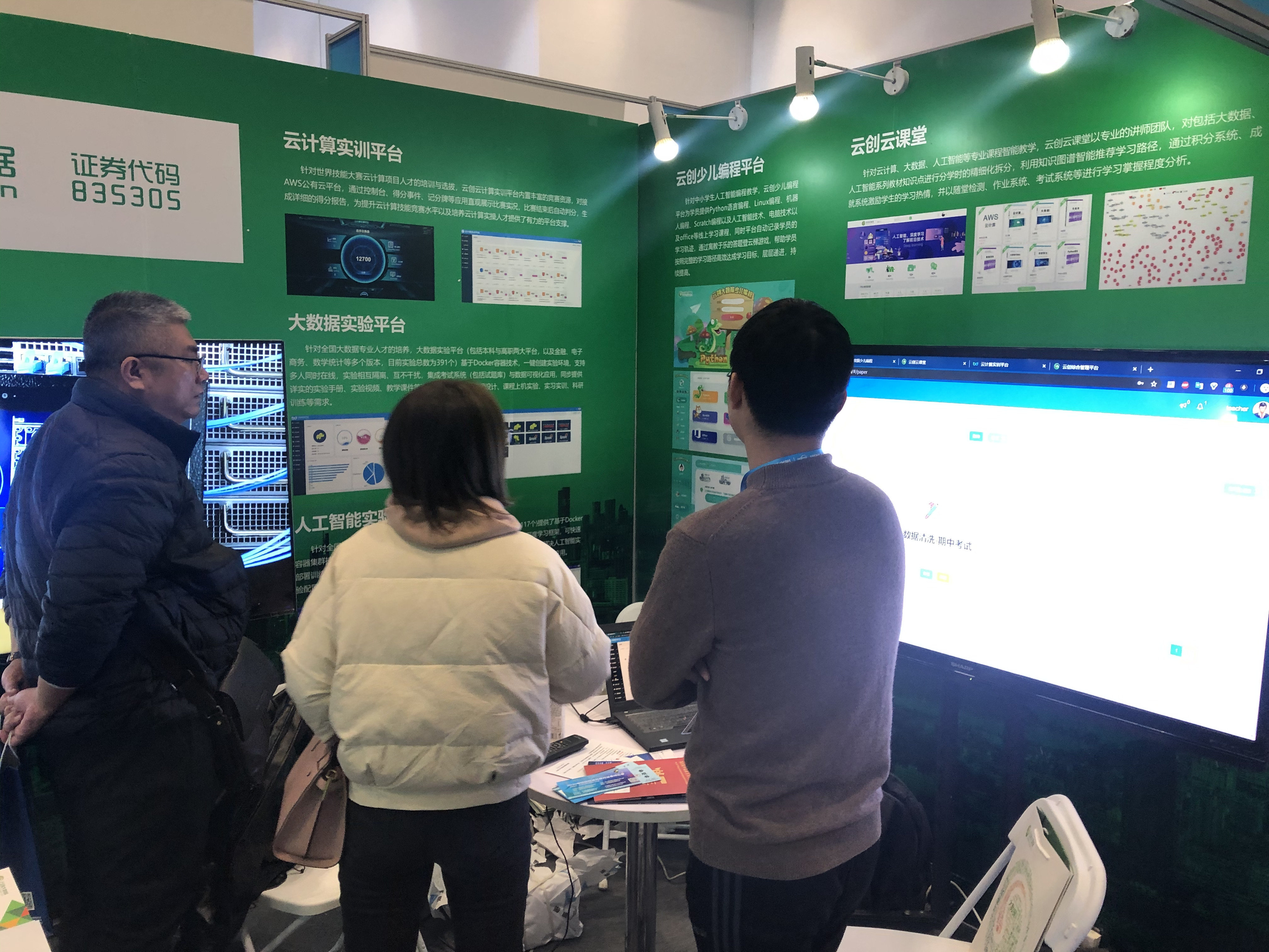 作為以大數據存儲與智能處理為核心發(fā)展的高新技術企業(yè),云創(chuàng)大數據攜智慧教育領域的云計算實訓平臺、大數據實驗平臺、人工智能實驗平臺、云創(chuàng)云課堂以及云創(chuàng)少兒編程平臺亮相國際智慧教育展覽會,以期為教育行業(yè)發(fā)展提供新思路和新模式。眾多訪客紛紛來到云創(chuàng)展區(qū),與駱夢陽經理和顧焜工程師進行業(yè)務對接和技術交流。