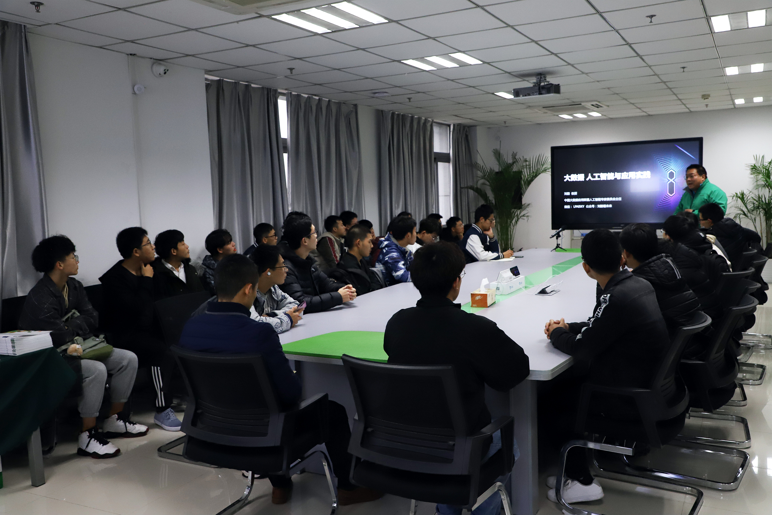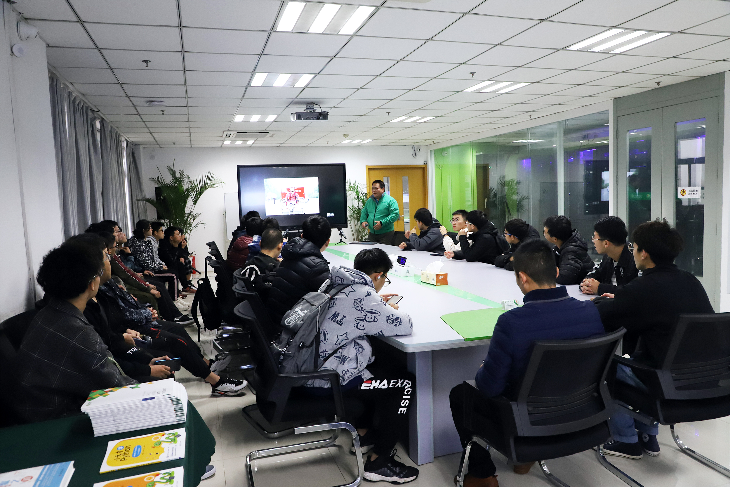 同學們到達云創后,沈大為首先為同學們作主題報告。在報告中,沈大為向同學們介紹了云創技術優勢、企業文化,及以大數據存儲與智能處理為核心,在公共安全、智慧環保、地震預警、智能教育等領域的產品應用及其取得的成功案例等。同時,沈大為還為同學們分享了物聯網、云計算、大數據和人工智能等前沿科技的未來發展和應用實踐,其獨到的見解和鮮明的觀點給同學們留下了深刻印象。