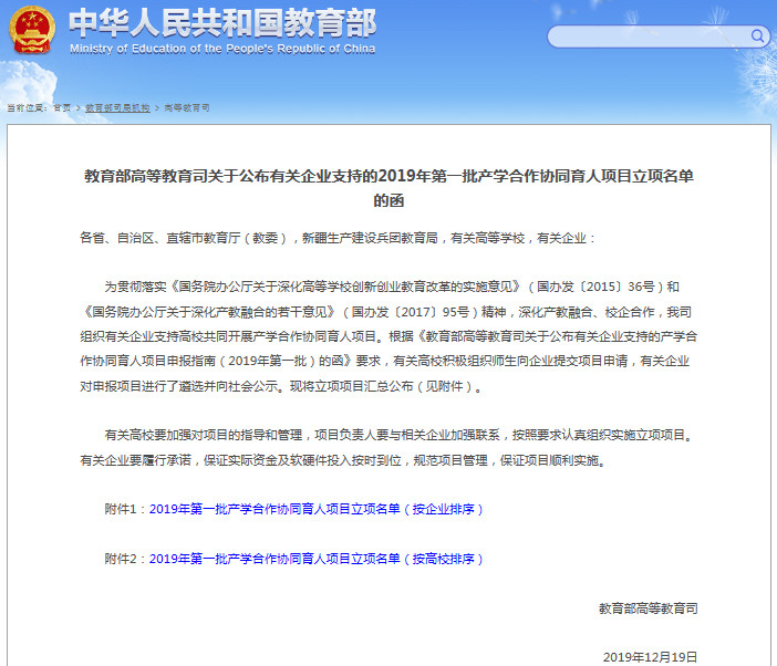 “產(chǎn)學(xué)合作協(xié)同育人項(xiàng)目”,由教育部為貫徹落實(shí)《國務(wù)院辦公廳關(guān)于深化高等學(xué)校創(chuàng)新創(chuàng)業(yè)教育改革的實(shí)施意見》和《國務(wù)院辦公廳關(guān)于深化產(chǎn)教融合的若干意見》精神,于2014年啟動(dòng)實(shí)施,旨在以產(chǎn)業(yè)和技術(shù)發(fā)展的新需求推動(dòng)高校人才培養(yǎng)改革,培養(yǎng)適應(yīng)產(chǎn)業(yè)發(fā)展需要的應(yīng)用型、復(fù)合型、創(chuàng)新型人才。