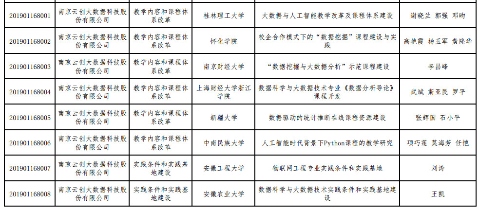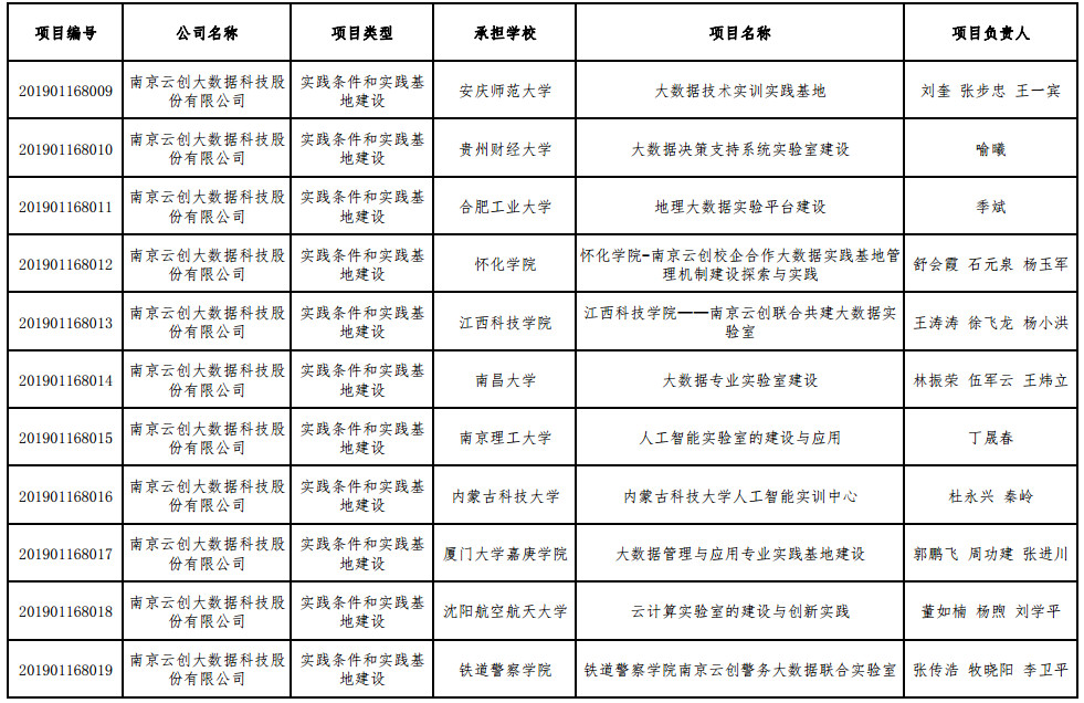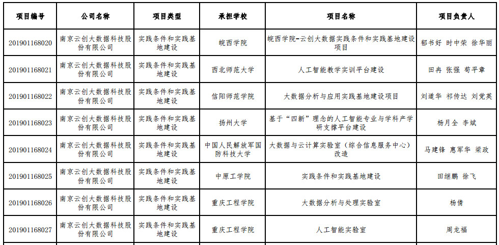 云創(chuàng)大數(shù)據(jù)2019年第一批教育部產(chǎn)學(xué)合作協(xié)同育人項(xiàng)目立項(xiàng)名單(點(diǎn)擊看大圖)