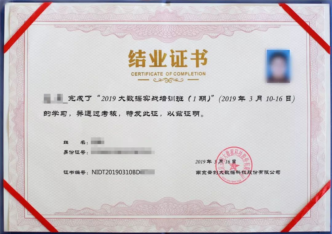 參加培訓的學員可獲得云創大數據頒發的實戰培訓結業證書,以作為順利完成大數據、人工智能實訓課程的能力證明。