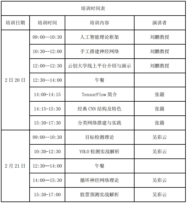 2020全國高校人工智能師資免費培訓班(2期):2月20日-21日