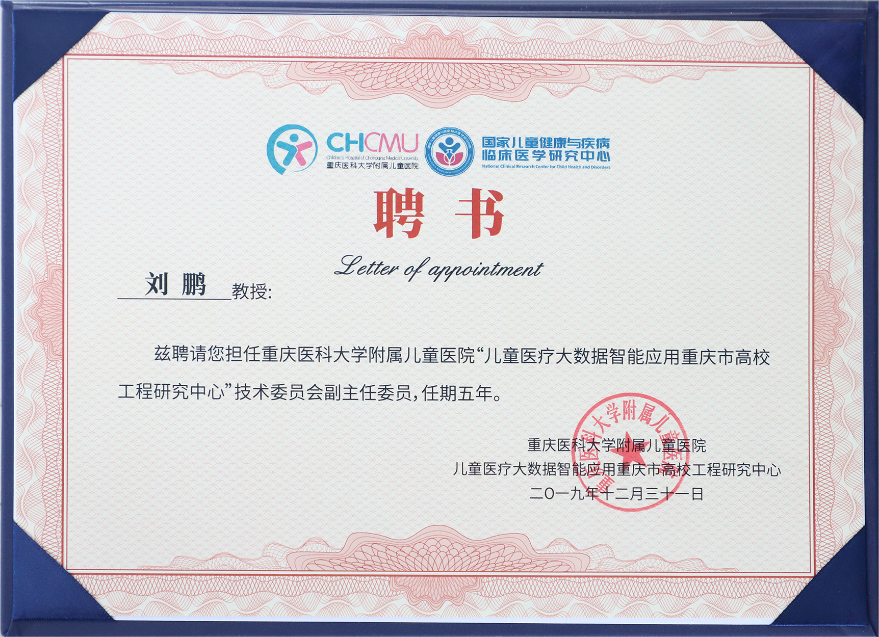 其中,清華大學(xué)博士、中國大數(shù)據(jù)應(yīng)用聯(lián)盟人工智能專家委員會主任、南京大數(shù)據(jù)研究院院長、云創(chuàng)大數(shù)據(jù)總經(jīng)理劉鵬教授被正式受聘為重慶醫(yī)科大學(xué)附屬兒童醫(yī)院“兒童醫(yī)療大數(shù)據(jù)智能應(yīng)用重慶市高校工程研究中心”技術(shù)委員會副主任委員。