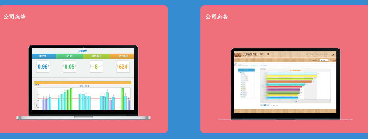 2、告別復雜的報表與和繁瑣流程,以數據、圖表量化企業效率,可視化地呈現企業態勢: