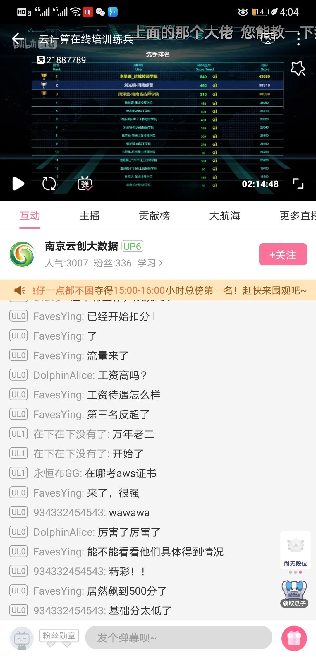2月19日下午2點,“云計算技能第一次在線練兵”直播和大家如約見面,熱烈的互動,激烈的排名······云創大數據的講師團隊帶領大家共同領略了云計算練兵的魅力。