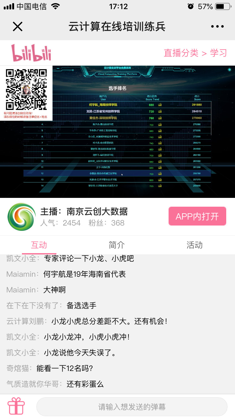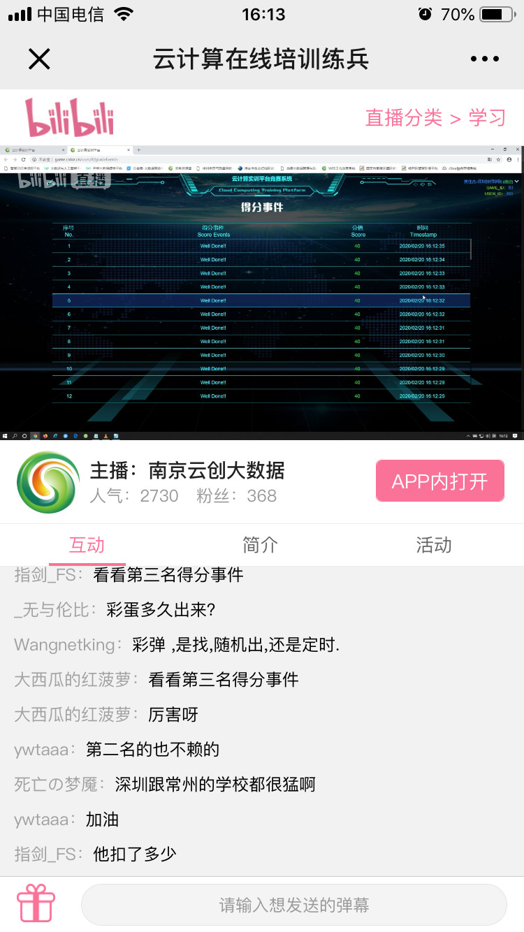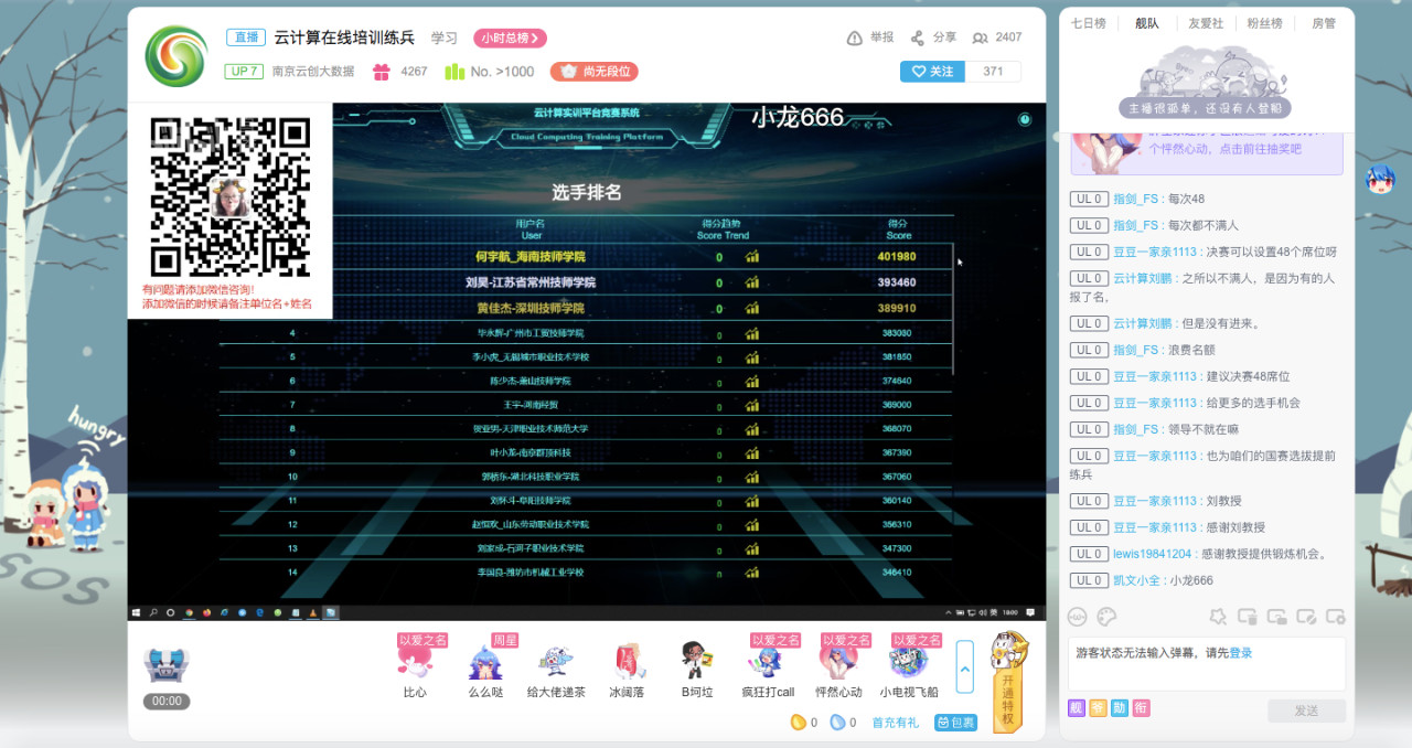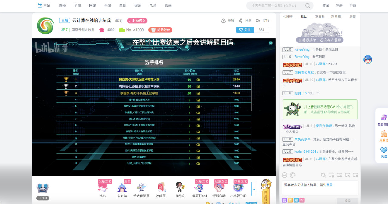 直播一開始,講師首先帶大家簡(jiǎn)單回顧了練兵的比賽規(guī)則、獎(jiǎng)勵(lì)機(jī)制、競(jìng)賽平臺(tái)(云創(chuàng)云計(jì)算實(shí)訓(xùn)平臺(tái))等相關(guān)細(xì)節(jié)。對(duì)于大家提出的各種問題,兩位講師也給予了詳盡的回答。在彈幕區(qū),大家還時(shí)不時(shí)為自己的同學(xué)、校友能夠取得好名次加油打氣。
