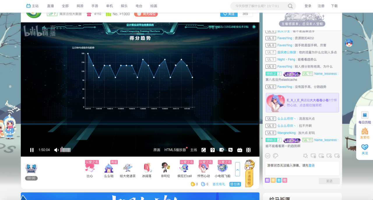 在比賽過程中,隨著每位選手的得分變化,排名變化實(shí)時(shí)呈現(xiàn)在屏幕畫面中。對(duì)于參賽選手的得分事件、得分趨勢(shì)、得分點(diǎn)以及失分點(diǎn)等,講師也及時(shí)為大家做出解析。值得一提的是,彩蛋的獲得,每一個(gè)整點(diǎn)(15點(diǎn)、16點(diǎn)、17點(diǎn))的選手排名變化情況,一度成為講師與大家分享的重點(diǎn)話題。
