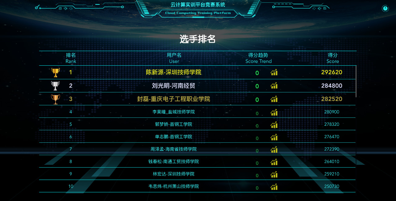 “云計算技能第3次在線練兵”選手最終排名