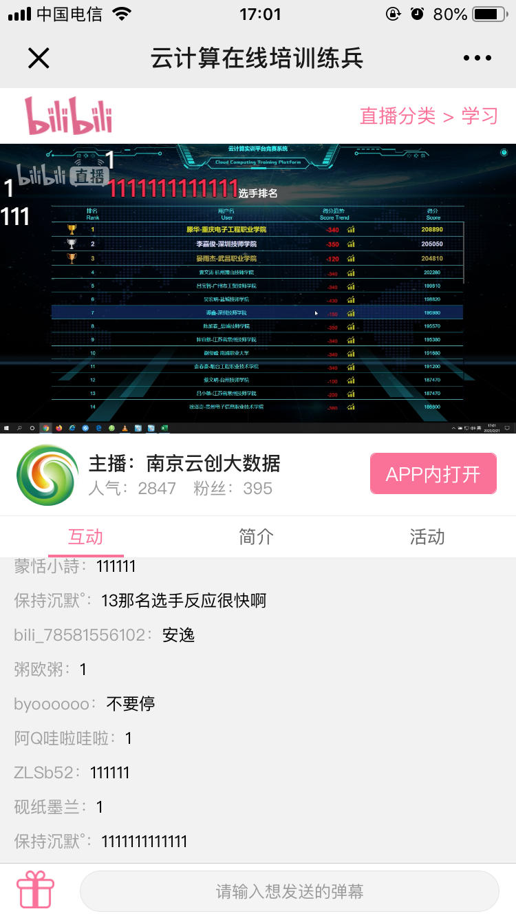 比賽激烈,互動熱烈,排名緊張刺激……2月21日14點至18點,“云計算技能第三次在線練兵”直播互動在嗶哩嗶哩和大家如約見面。與前兩次練兵一樣,本次練兵再度展現了參賽選手優秀的云計算實戰能力。