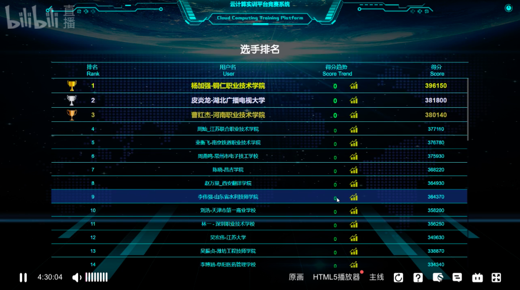 “云計算技能第4次在線練兵”選手最終排名