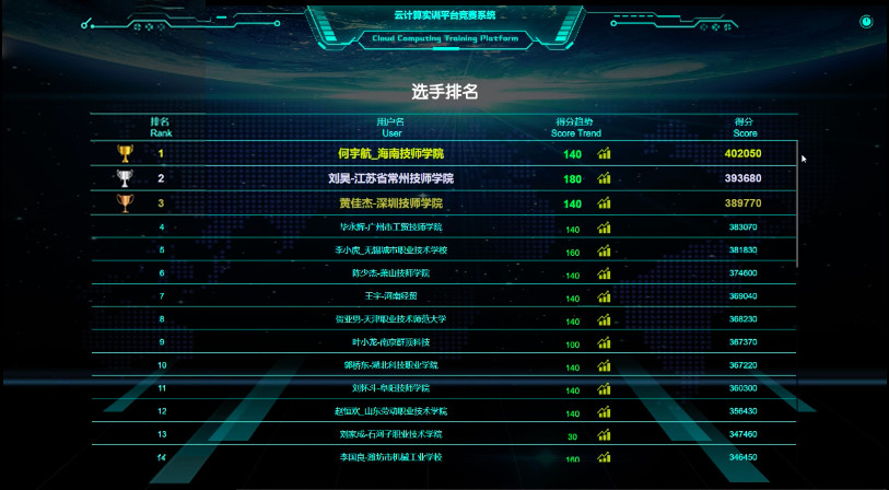 “云計算技能第3次在線練兵”選手最終排名