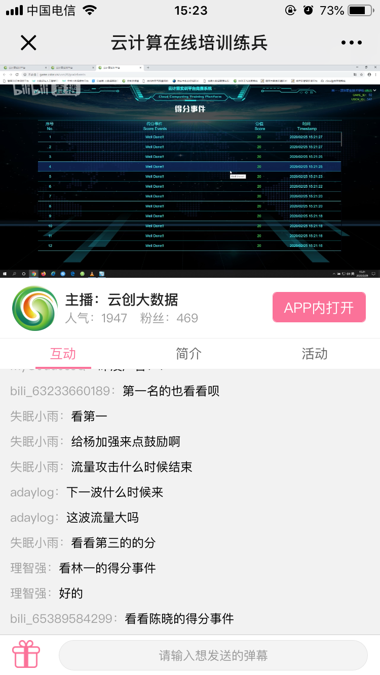 在練兵過程中,云創大數據優秀工程師謝超、蘇澤月、張婧雯在對選手的得分進行點評(包括得分趨勢、得分事件等)之余,還與觀眾進行了熱烈的討論和互動,對大家提出的各種疑問進行了詳盡解答。值得一提的是,針對彩蛋的獲取,一度成為工程師們與大家探討的熱議話題。