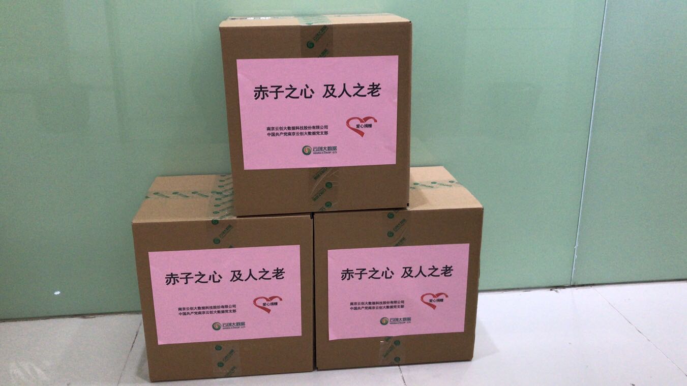看到各種報道中老人們獲得口罩十分困難的情況,云創大數據的員工們心里很難過,想要為老人們盡一點心力,于是通過多方搜尋購買渠道,并在拿到現貨后為南京市秦淮區光華路街道紫金和銀龍鑫苑社區700多位70歲以上老人定向捐贈非醫用防護口罩3000只。