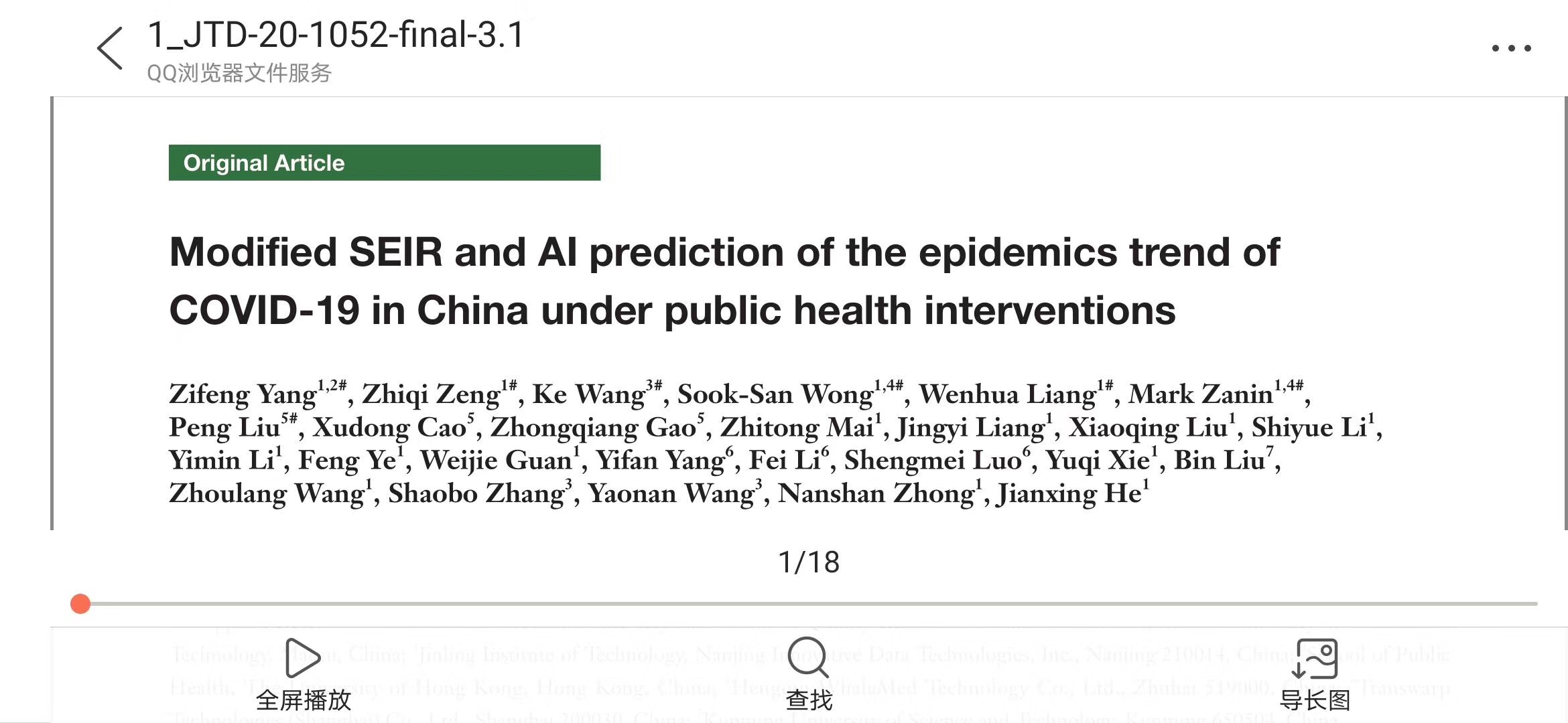 近日,云創大數據研發團隊在鐘南山院士團隊、何建行院士、楊子峰教授領導下,合寫的新冠病毒疫情預測論文《基于SEIR優化模型和AI對公共衛生干預下的中國COVID-19暴發趨勢預測》在《Journal of Thoracic Disease》(《胸部疾病雜志》)上發表。該文章提出了基于大數據的改進SEIR預測模型,并提出了數據受限條件下的人工智能LSTM預測方法。