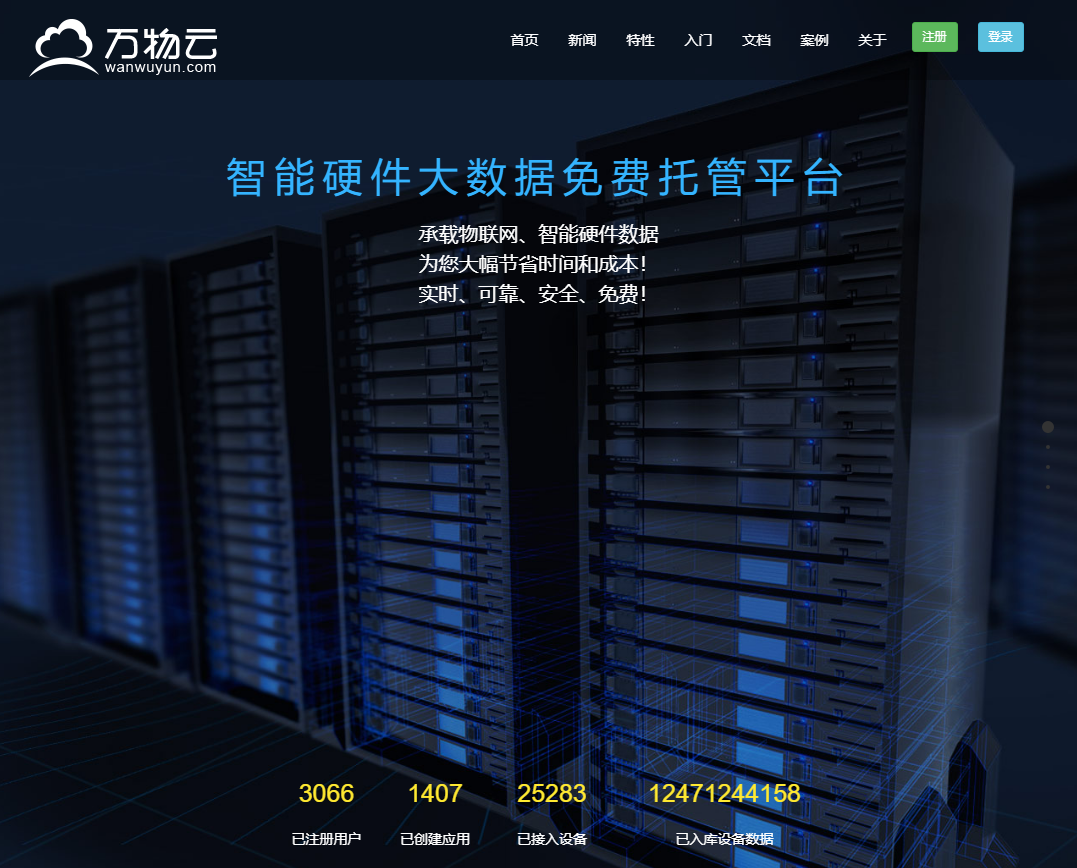 萬物云是一個免費的物聯網設備和應用的數據托管平臺,可提供簡單易用的物聯網與智能硬件數據接入、存儲和處理以及數據應用等一站式數據托管服務,在大幅度縮短開發周期、降低研發和營運成本的同時,將打造一個萬物互聯的世界。目前,萬物云已注冊3000余家用戶,已入庫設備數據124億余條。