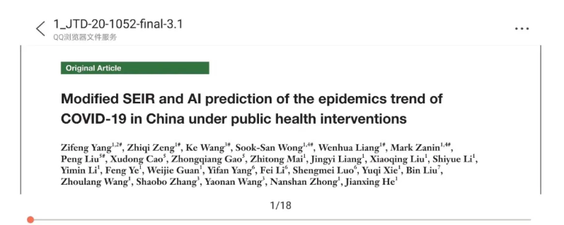 闡述第一版預測內容的論文《基于SEIR優化模型和AI對公共衛生干預下的中國COVID-19暴發趨勢預測》在《Journal of Thoracic Disease》(《胸部疾病雜志》)上正式發表。其中,云創大數據總裁劉鵬教授作為并列第一作者。該文章提出了基于大數據的改進SEIR預測模型,并提出了數據受限條件下的人工智能LSTM預測方法。
