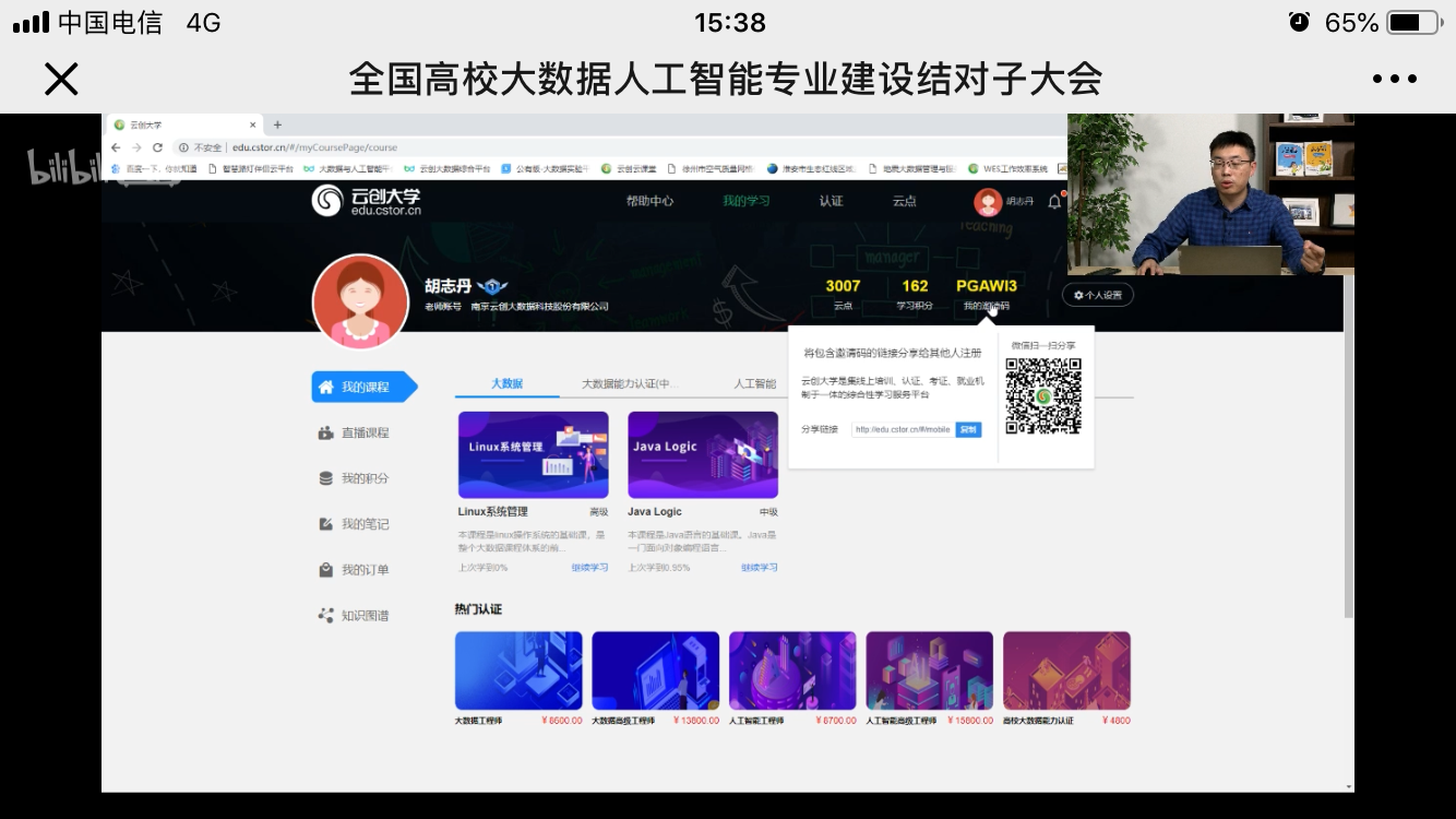 接著,楊震宇經(jīng)理對(duì)云創(chuàng)大學(xué)平臺(tái)(http://edu.cstor.cn/#/)進(jìn)行了詳細(xì)介紹。從其介紹可知,云創(chuàng)大學(xué)平臺(tái)提供的線上課程和認(rèn)證服務(wù),可以幫助大家足不出戶學(xué)習(xí)大數(shù)據(jù)、人工智能專業(yè)技能,并獲得能力提升、認(rèn)證需求、就業(yè)推薦等方面的幫助。學(xué)員在獲得專業(yè)技術(shù)知識(shí)與實(shí)踐技能提升的同時(shí),職場(chǎng)競(jìng)爭(zhēng)力得以不斷增強(qiáng)。同時(shí),楊震宇經(jīng)理還播放了云創(chuàng)大學(xué)講師的精彩授課視頻。