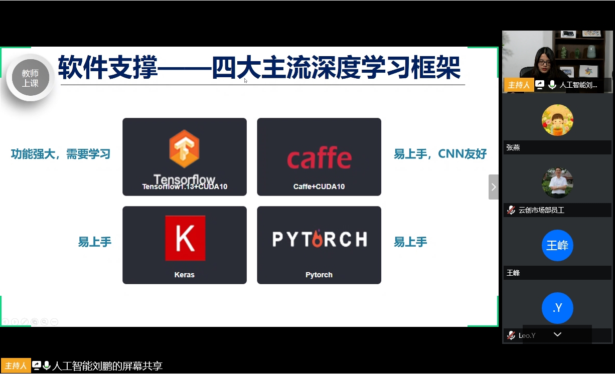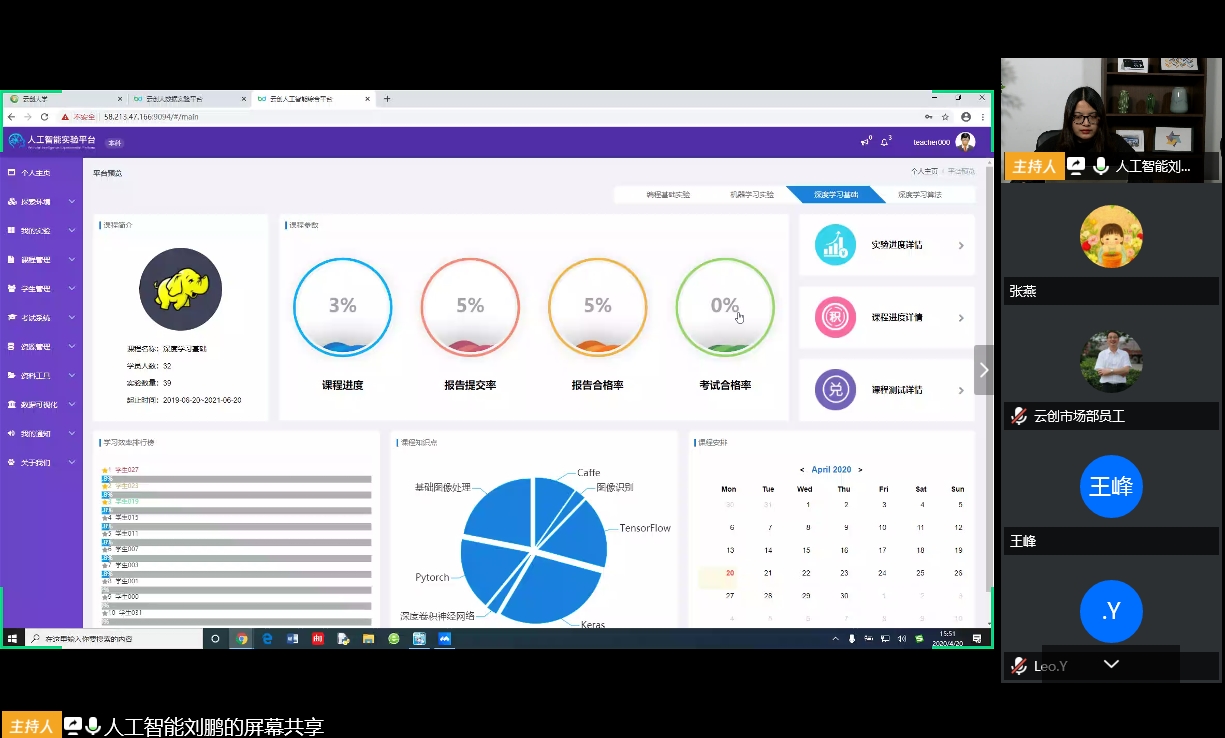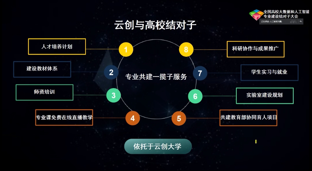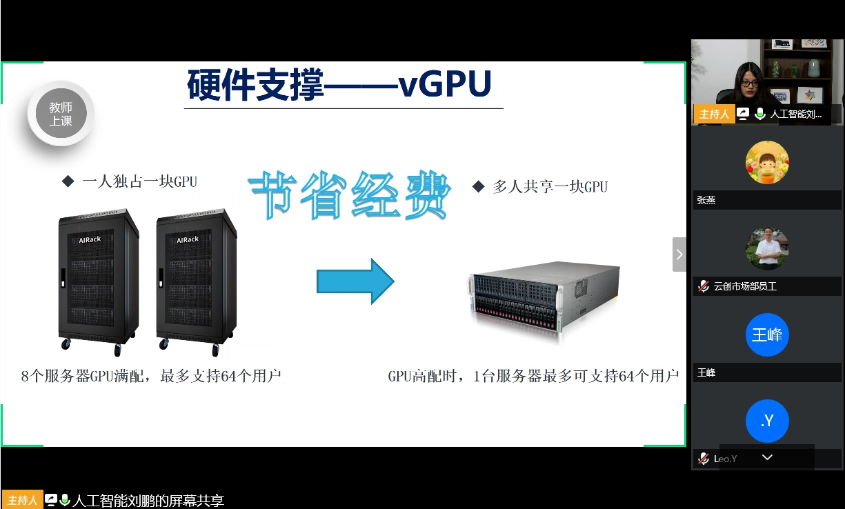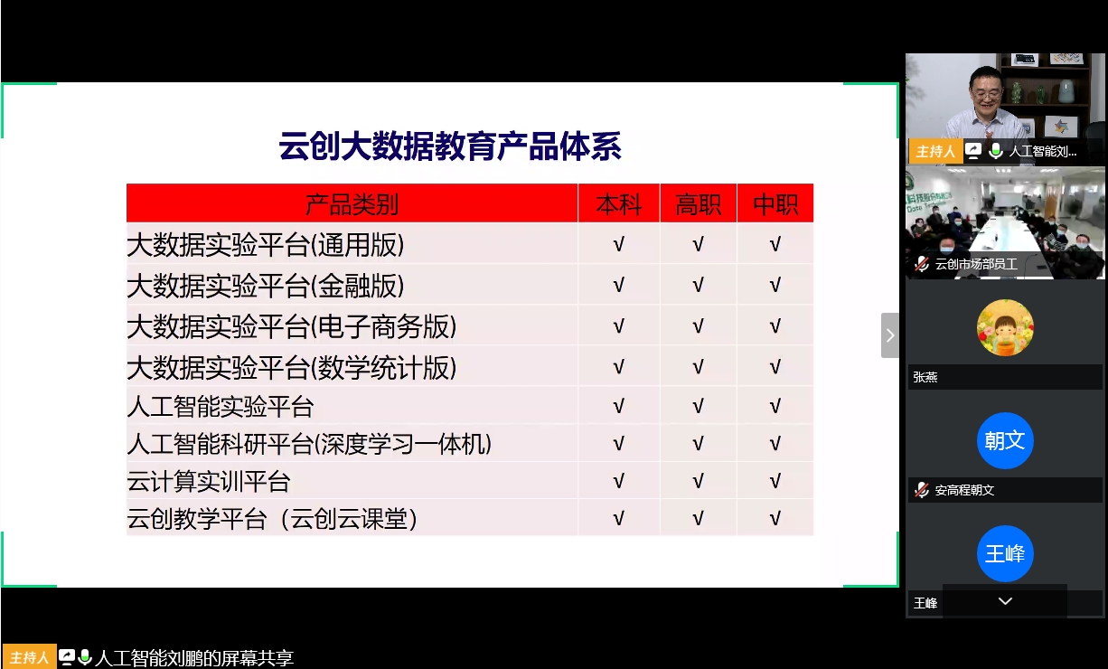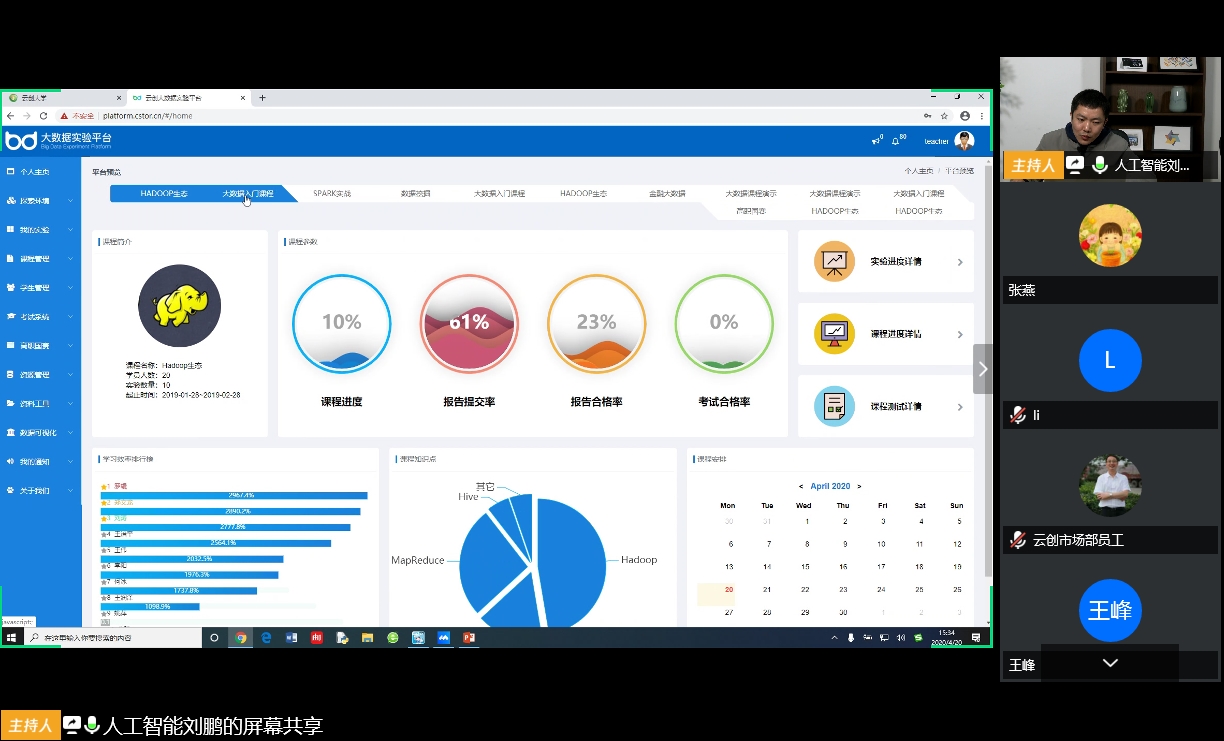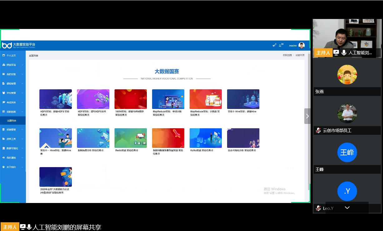 最后,針對此前劉鵬教授介紹的云創大學平臺,楊震宇經理進行了細致的講解與演示,包括平臺課程、積分、云點等,并通過具體課程內容梳理和導學視頻,使在線合作伙伴對云創大學平臺建立了更為直觀系統的認識,相信通過云創大學平臺體系的系統訓練,可向社會輸出更多高水平的大數據與人工智能人才。