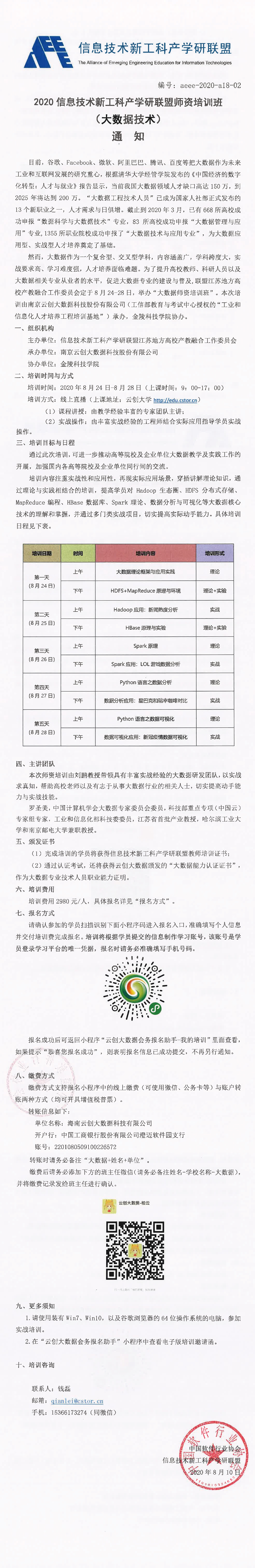 (大數據技術)歡迎參加2020信息技術新工科產學研聯盟師資培訓班!