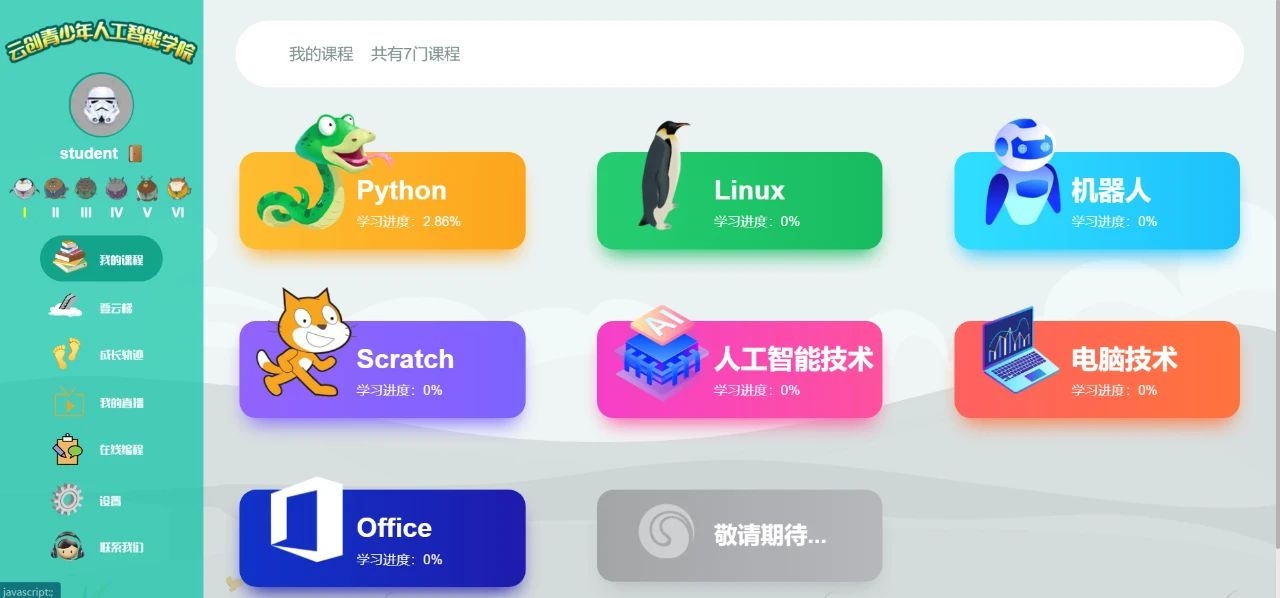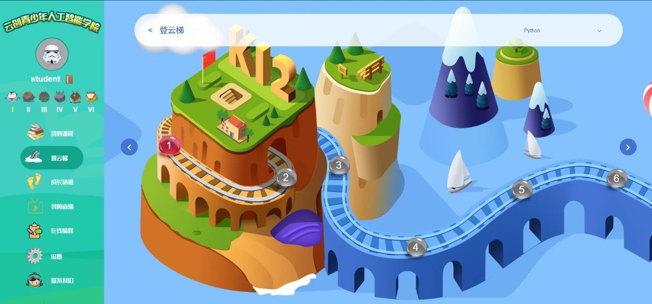 云創青少年人工智能學院平臺(https://k12.cstor.cn)通過教、學、練完成知識的學習和儲備,以“獎勵機制+遵循孩子興趣+寓教于樂”幫助學員按照完整的學習路徑高效達成學習目標,層層遞進,持續提高。