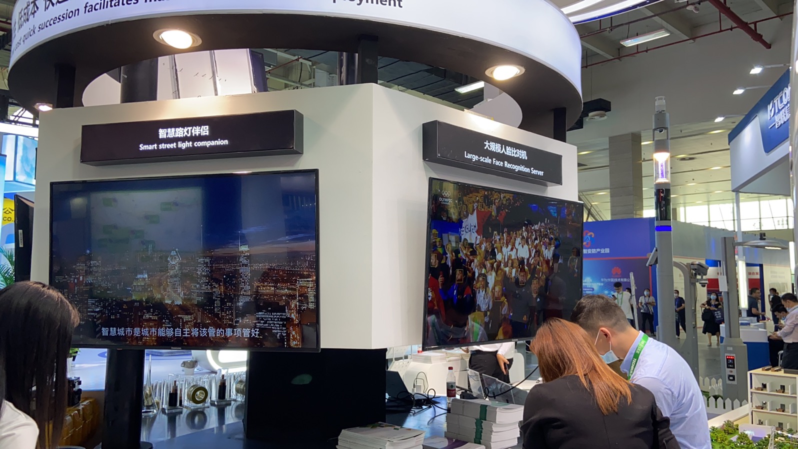 展會上,云創大數據攜智慧路燈伴侶和云創大規模人臉比對機兩款智能安防產品精彩亮相,吸引了不少訪客的駐足了解。技術人員和商務人員為訪客進行了詳細演示,并針對產品特性、技術優勢、主要功能,以及商務合作等內容與訪客進行了交流。