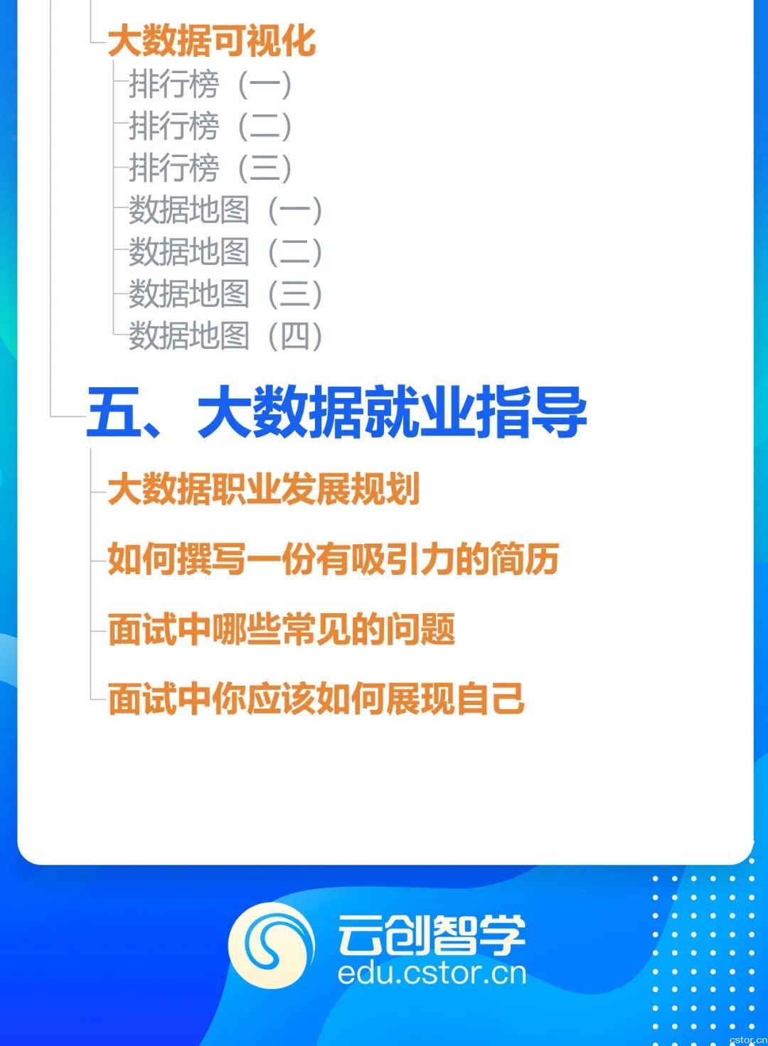 如何讓畢業(yè)生學有所用、得到心儀offer,學有所值、收獲理想起薪?云創(chuàng)智學依托于大數據上市公司——云創(chuàng)數據(股票代碼:835305)在大數據項目實戰(zhàn)、校企協(xié)同育人等方面的積淀,于3月21日起開設“2022屆畢業(yè)生大數據就業(yè)保障班”。