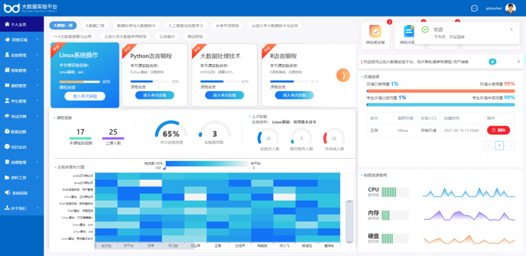 大數據實驗平臺提供幾百個大數據實驗指導、數據和分布式計算環(huán)境,全面提升學員實戰(zhàn)技能。
